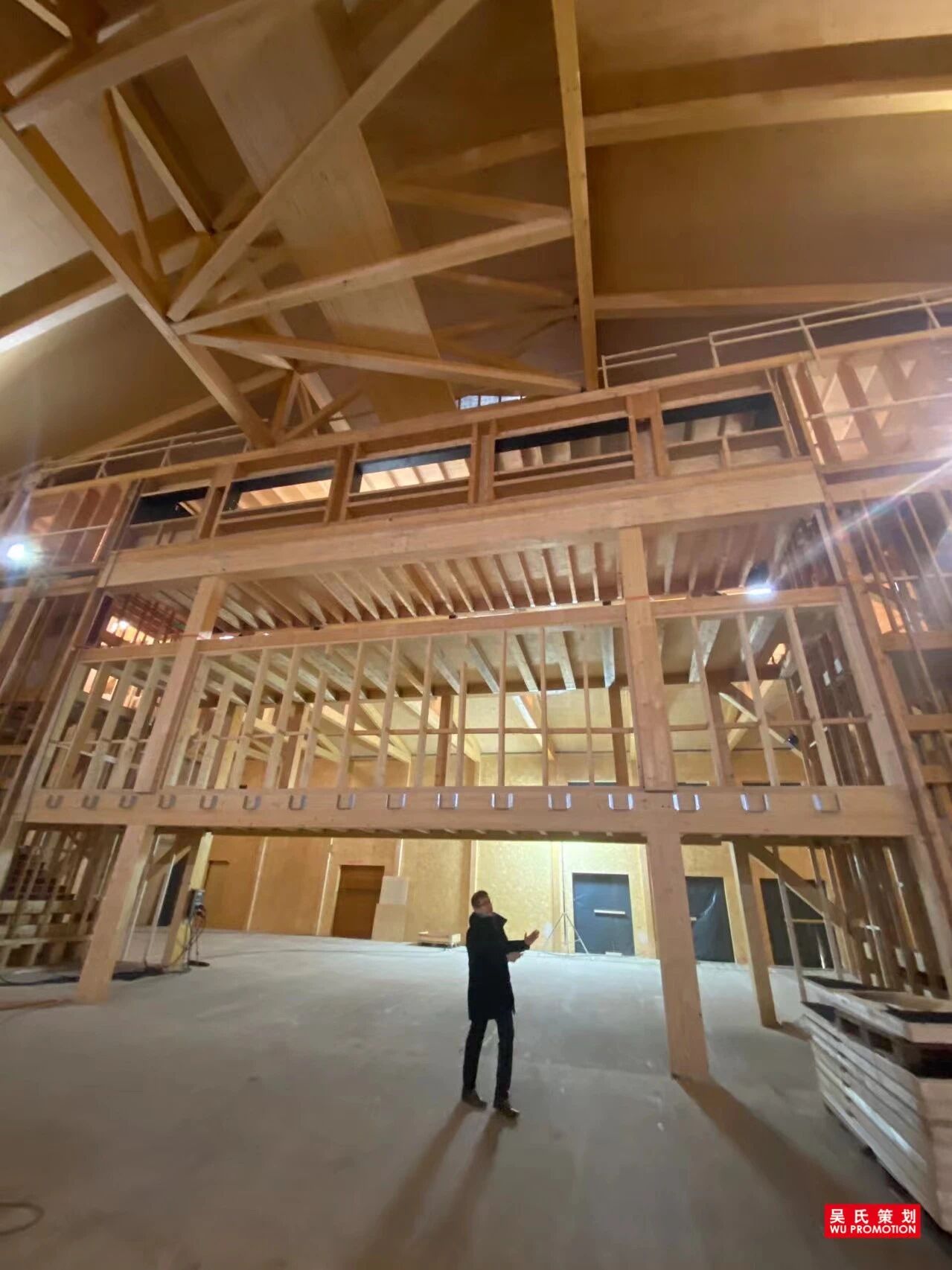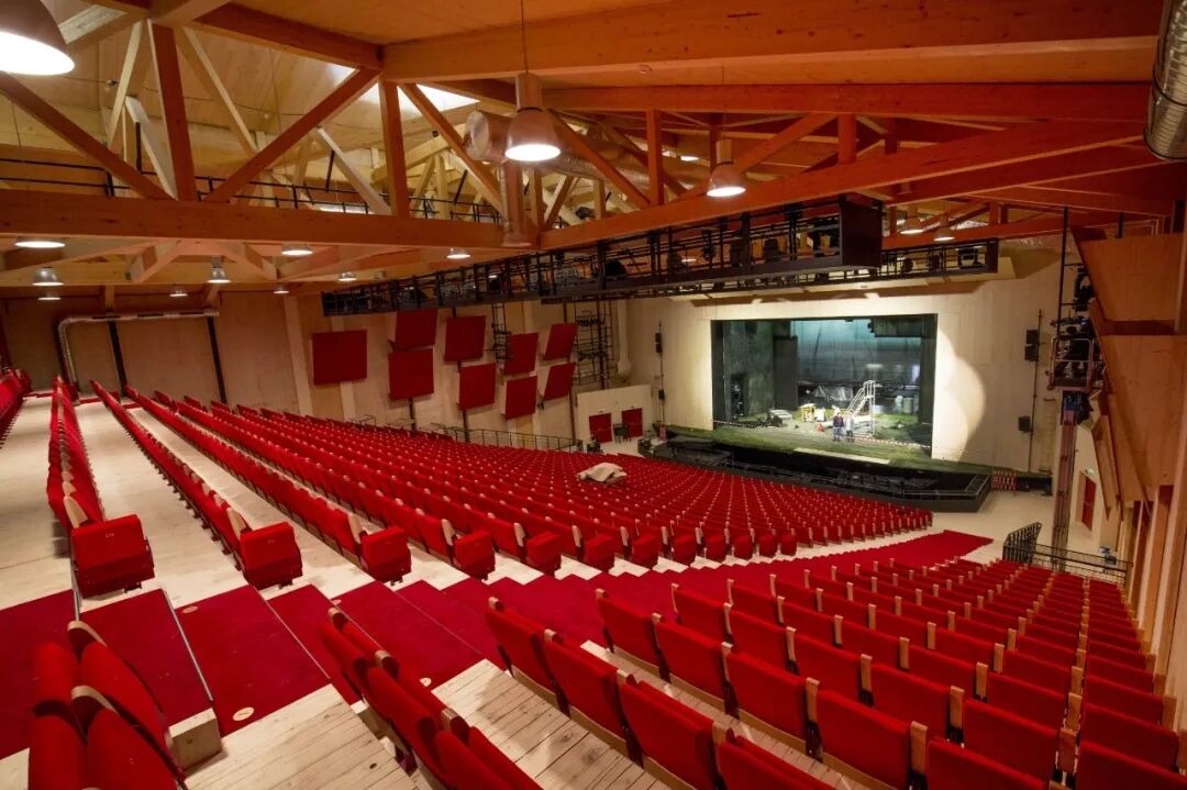 万国歌剧院是一座全木质可拆卸剧院,整体由5000方云杉木以及80块长11米、宽3米、厚40厘米的云杉木板组成。云杉木为法国工人手工挑选的欧洲顶级淡蜜色芬兰云杉木拥有完美的纹理线条,颜色分布均匀,色调自然和谐。